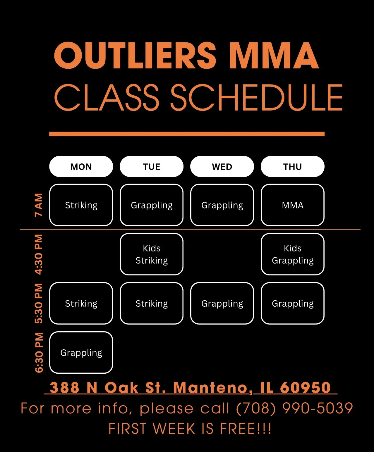 Combining elements from Boxing, Kickboxing / Muay Thai, & MMA. Outliers offers striking classes for adults & kids (ages 5-12).